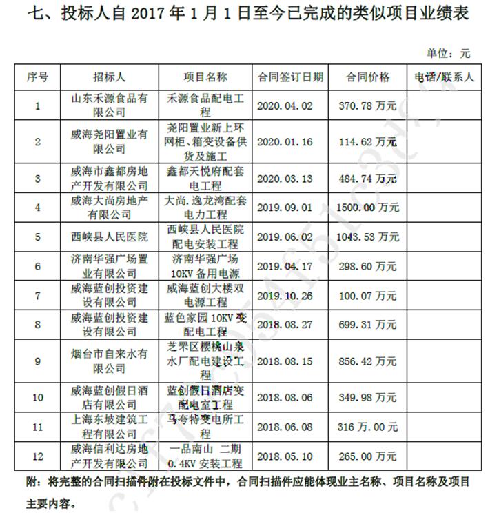 摘要: 城源商廈配電室及室外管線配電采購(gòu)與安裝工程中標(biāo)結(jié)果公告一、項(xiàng)目編號(hào):gclsq2020017二、項(xiàng)目(包段)名稱:城源商廈配電室及室外管線配電采購(gòu)與安裝工程三、中標(biāo)信息標(biāo)包中標(biāo)人名稱地址中標(biāo)金額(元)A威海華通中聯(lián)電力科技有限公司威海市沈陽(yáng)路-102號(hào)1485745.20四、主要標(biāo)的…
