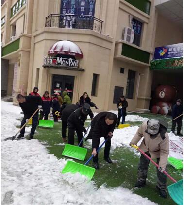 早上7點,員工們不畏嚴寒、冒著大雪陸續(xù)來到公司。張輝、王言禮、李玉波、唐建民、谷明昭、劉軍、李翠蘭、夏海寧、徐俊等同志自發(fā)的頂著風(fēng)雪,揮舞著鐵鍬開始對集團大院以及路上的積雪和結(jié)冰進行清掃,大家齊心協(xié)力,配合默契,鏟的鏟、推的推、掃的掃,干的熱火朝天,忙碌的身影構(gòu)成了一道亮麗的風(fēng)景線,隨后到來的員工也都自主的加入到清雪隊伍,雖然室外溫度很低,但大家勞動的熱情和團結(jié)的力量讓這個冬日變得格外溫暖。