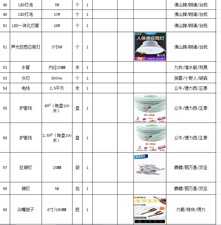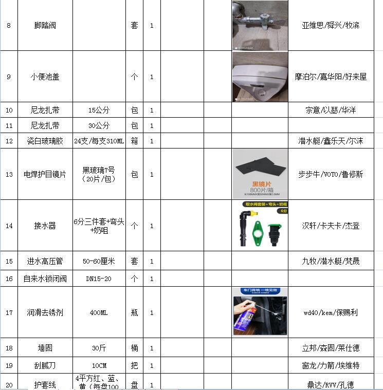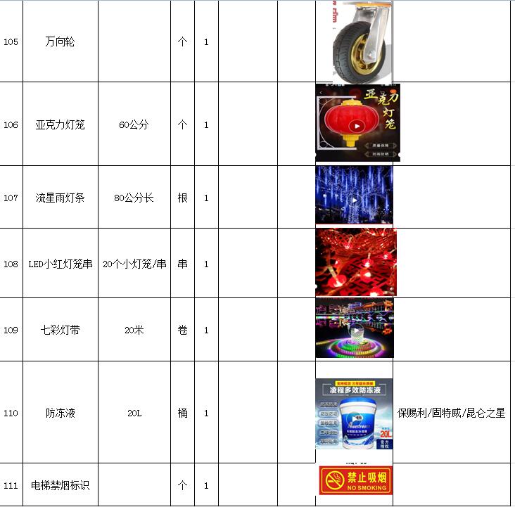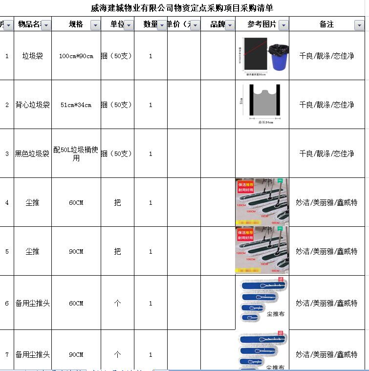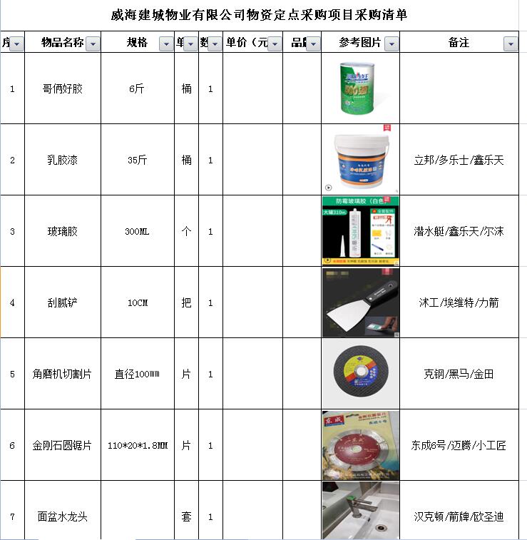 (5)采購(gòu)內(nèi)容:威海建城物業(yè)物資定點(diǎn)采購(gòu),主要包括五金、水暖管件、保潔、維修、綠化所需物資、應(yīng)急維修的其他物資等,采購(gòu)清單詳見附件。