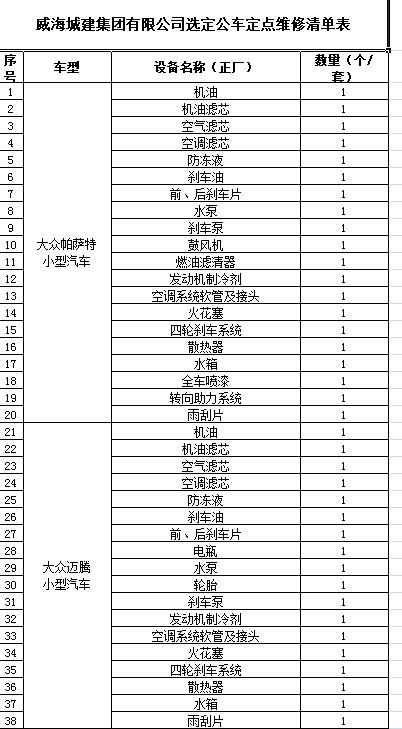 (4)采購內(nèi)容:威海城建集團(tuán)10輛公車定點(diǎn)維修保養(yǎng)等服務(wù)內(nèi)容,采購清單詳見附件。